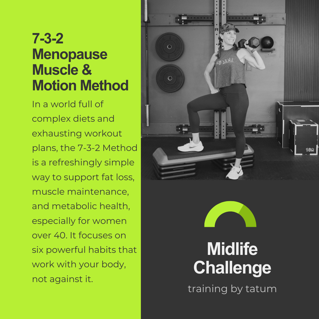 While some people scoff at New Year’s resolutions, I believe in them wholeheartedly. Any reason to set new goals, recommit, and try again is worth embracing. No journey is perfect, but every time you return to your fitness goals, you build momentum and make progress from there. Below you’ll find your Menopause Muscle Fix program for January, designed to help women in perimenopause and menopause build lean muscle, improve metabolism, support bone health, and feel stronger as they start the new year. You’ll also learn about my proven 7-3-2 Method, a simple approach to sustainable health, and the Feel Better Challenge, which guides you through one achievable habit change each month. Together, these tools help simplify menopause fitness and support you in becoming the strongest, healthiest version of yourself this year.