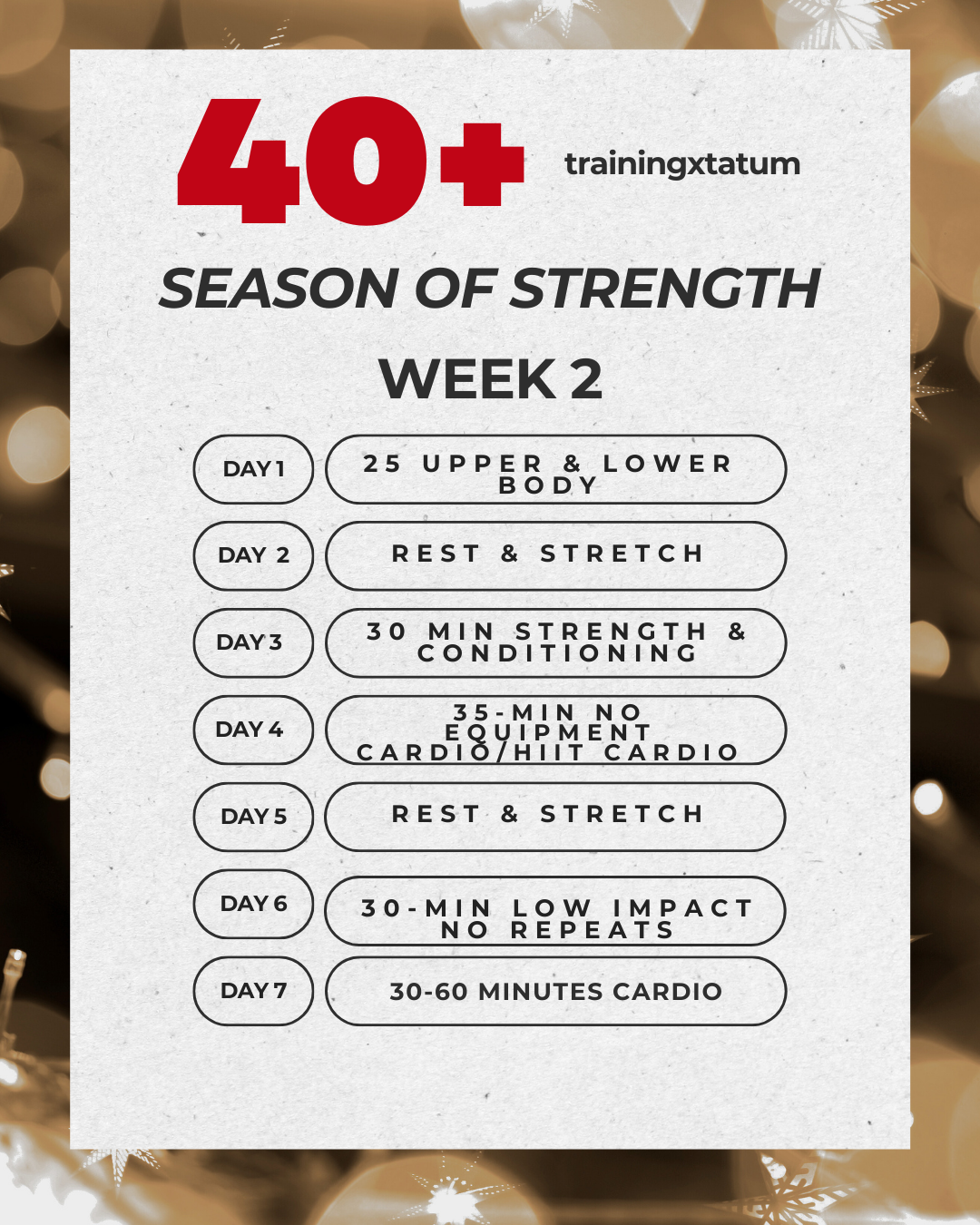 Don’t let your fitness take a backseat this season. This month I have lined up midlife-friendly workouts for a busy holiday schedule. These 20-40 minute full-body sessions will help you stay committed and consistent so that you maintain your health, strength, and joy while still making time for shopping, family, friends, and all the holiday fun. This month isn’t about going above and beyond; it’s about meeting your body’s needs, staying present, and keeping stress and cortisol down so you can truly enjoy the season.